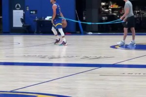 启动爆发这一块!库里绑着弹力绳训练急停跳投